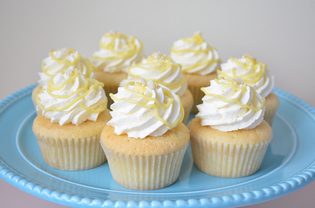 Des cupcakes moelleux, au goût rafraîchissant de citron, garnis d'une crème au beurre citron et d'une crème au citron.